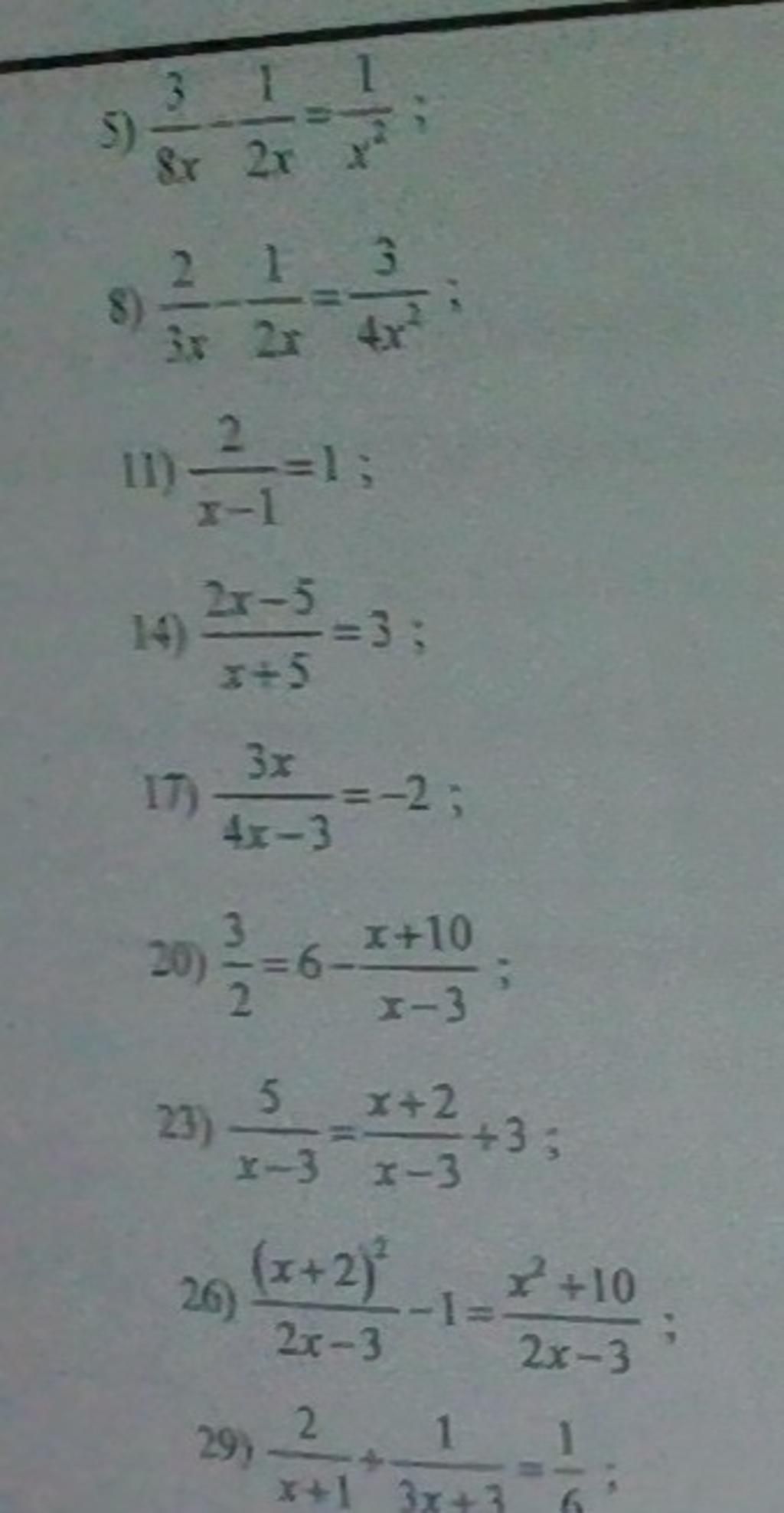 `14)\frac{2x-5}{x+5}=3(đk:x\ne-5)`