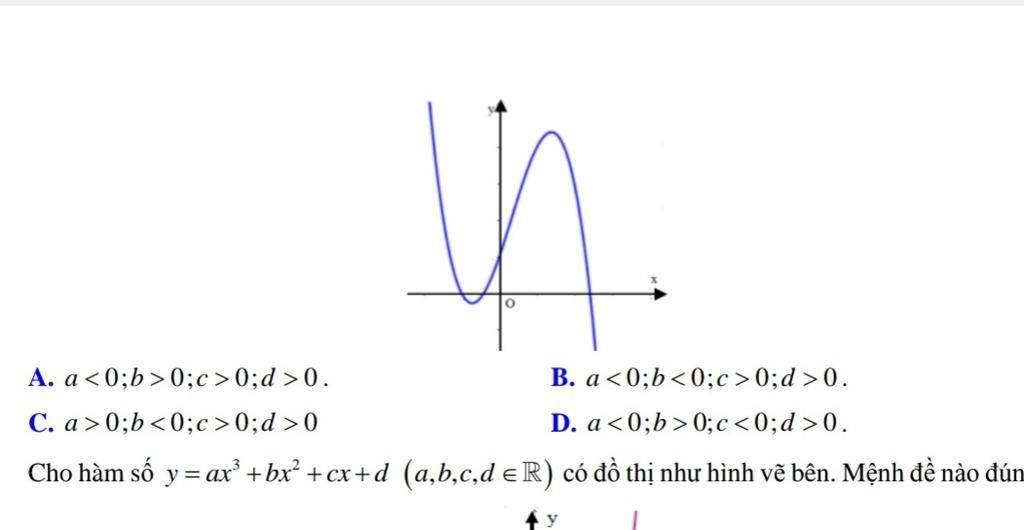 Theo hình ta thấy hàm số cắt trục `Oy` tại điểm nằm trên trục `Ox -> d >0`