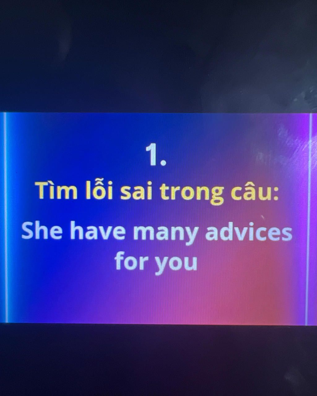 ta lại thấy advices là `N_{uct}`nên không được để `V_{s}` để biểu thị số nhiều và cũng không dùng với many(đếm được)