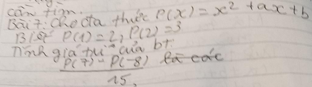 Do đó `(P(7)-P(-8))/15=-35/15=-7/3`