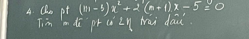 Vậy `m>3` thì phương trình `(1)` đã cho có 2 nghiệm trái dấu.