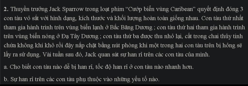 `-` Tàu `1` ở vùng biển lạnh và tàu `2` ở vùng biển nóng đều dễ bị han rỉ vì tiếp xúc với nước và không khí.