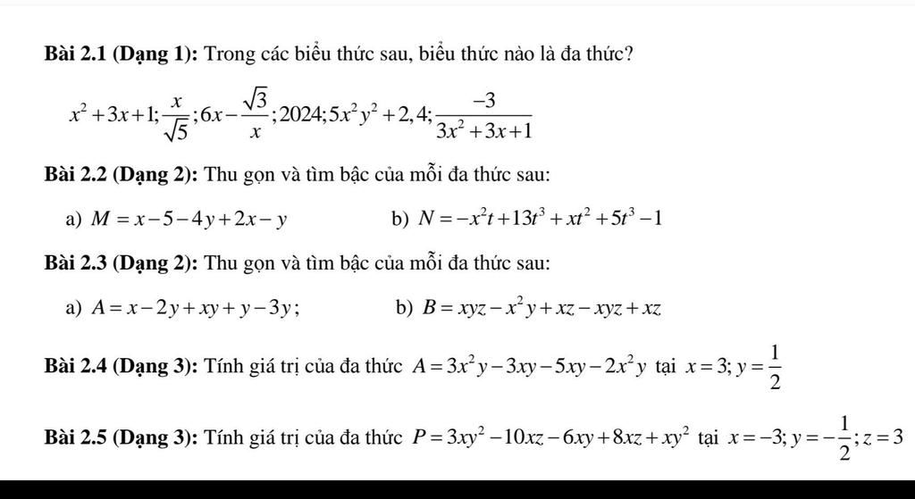 Các đa thức: `x^2+3x+1;5x^2y^2+2,4`