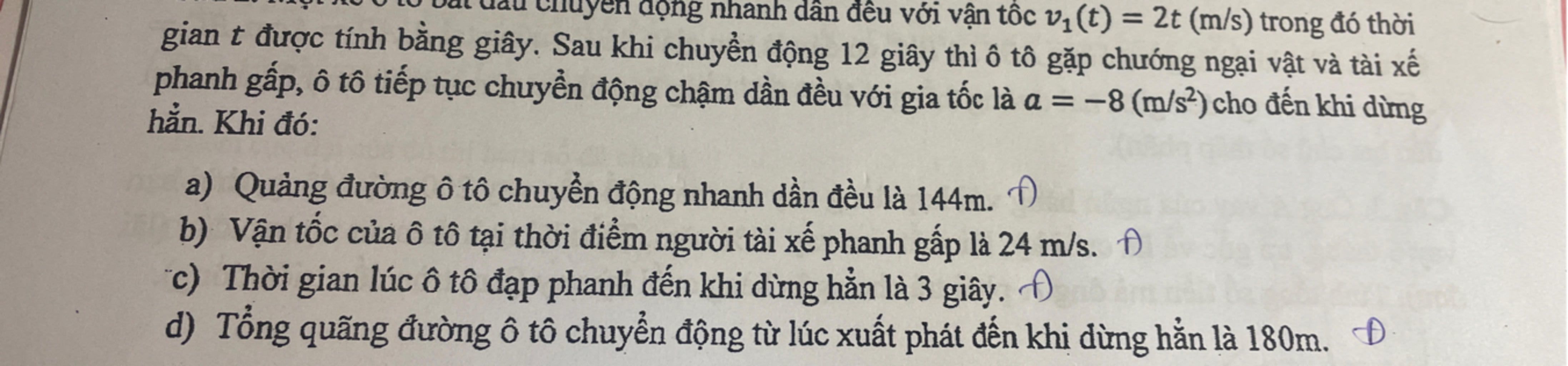 a) `s=\int_{0}^{12} |2t|dt=144`