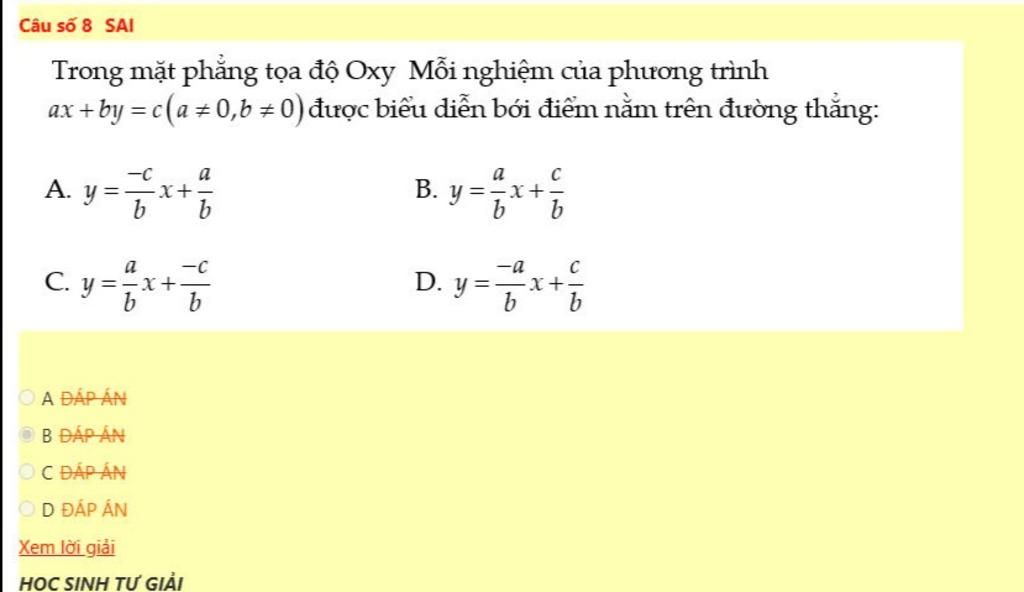 Bước ` 2 : ` Chia cả ` 2 ` vế cho ` b ( ` Vì ` b ` ` \ne 0 ) ` ` y = ( c - ax )/b `