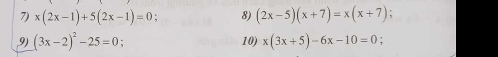 `8)` `(2x-5)(x+7)=x(x+7)`