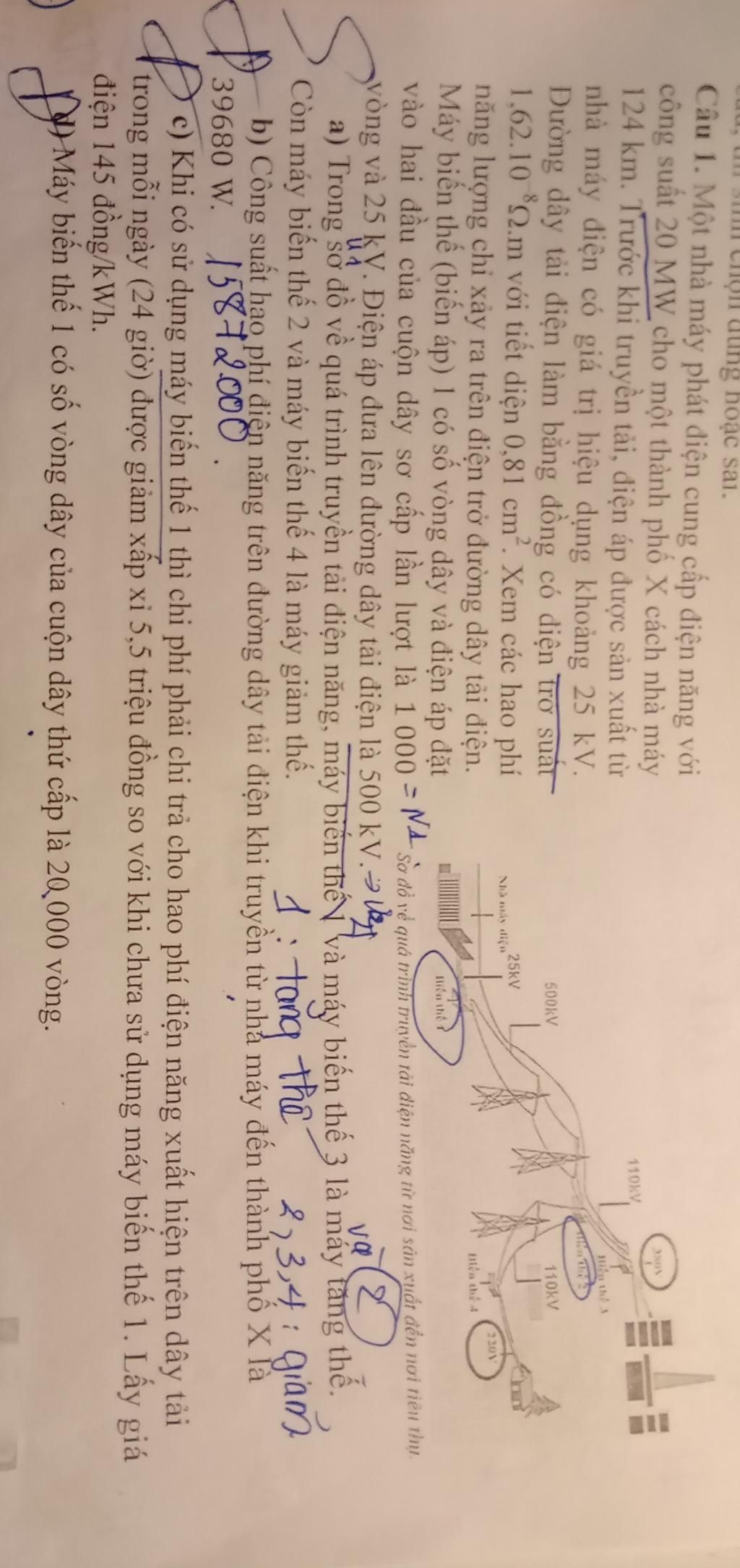 b) Sai. Vì công suất hao phí trên đường dây tải điện là 79360 W, không phải 39680 W.