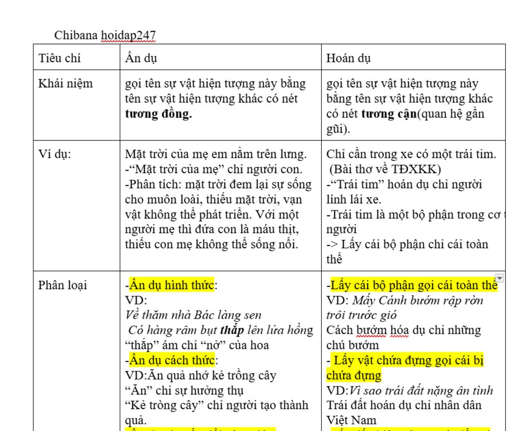 Phân biệt BPTT Hoán dụ và Ẩn dụ