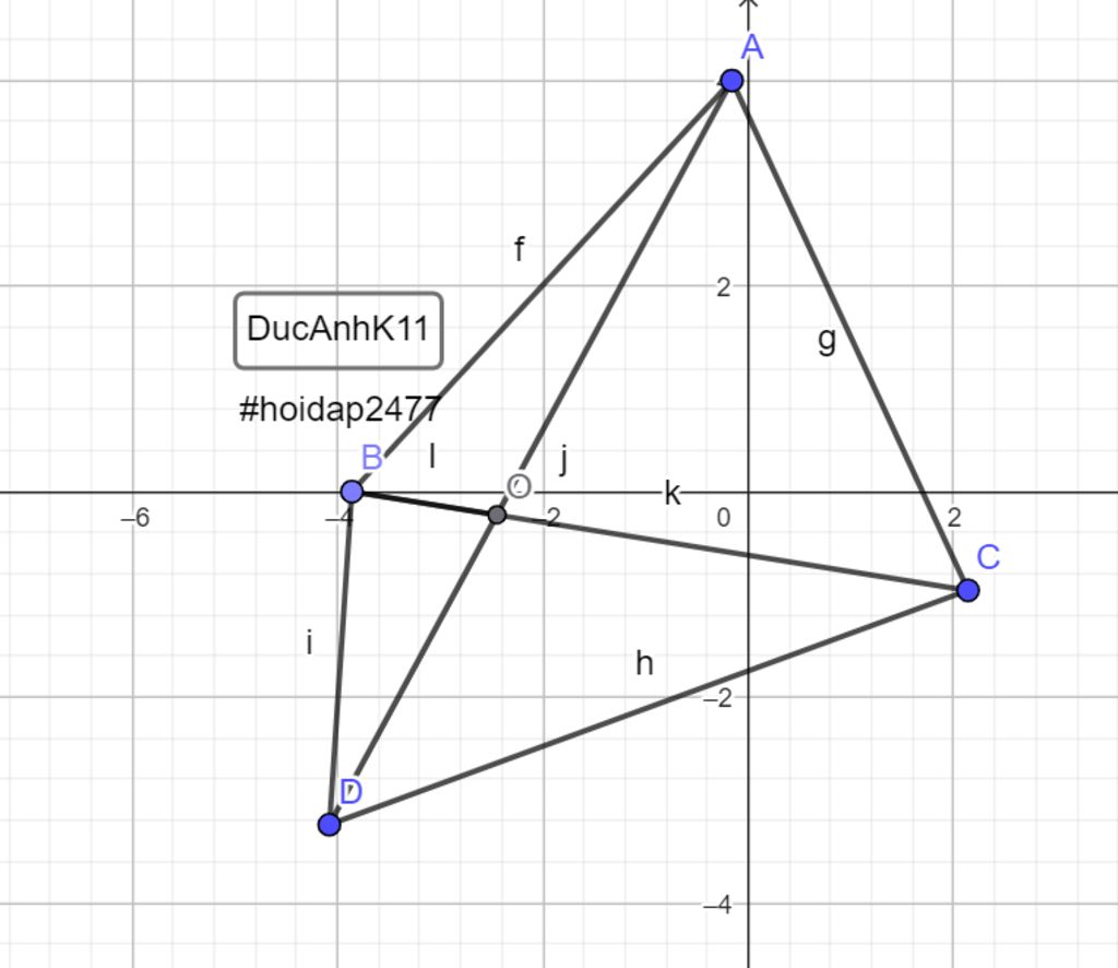 Gọi `O` là Giao điểm của `AC, BD` Khi đó Áp dụng bất đẳng thức tam giác ta được :