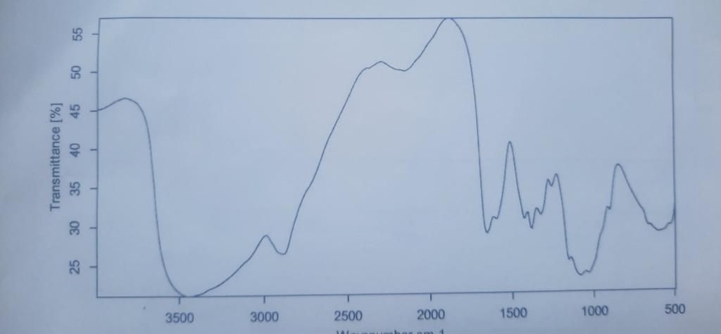 Nhận xét: ở bước sóng khoảng `3000-3500 cm^{-1}` có xuất hiện vân tù và rộng