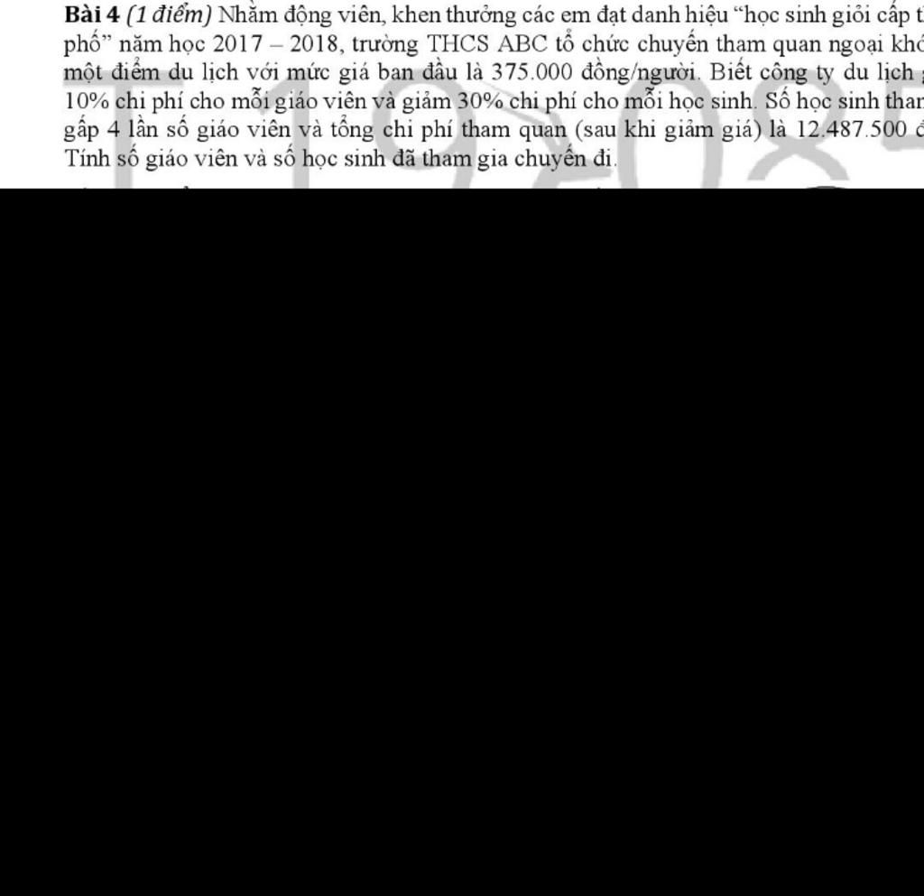 Vậy có `36` học sinh và `9` giáo viên đi.