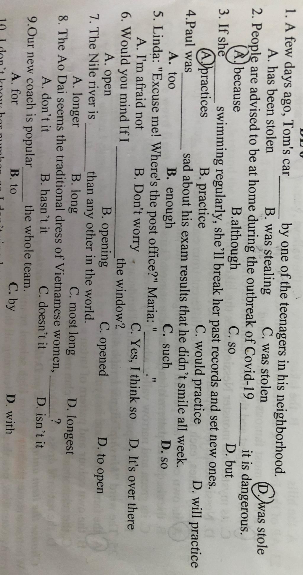 - Câu hỏi được người hỏi có ý nghĩa là mong muốn người trả lời có thể chỉ đường đi tới 1 địa điểm -> đáp án D là đáp án phù hợp nhất để trả lời trong trường hợp trên