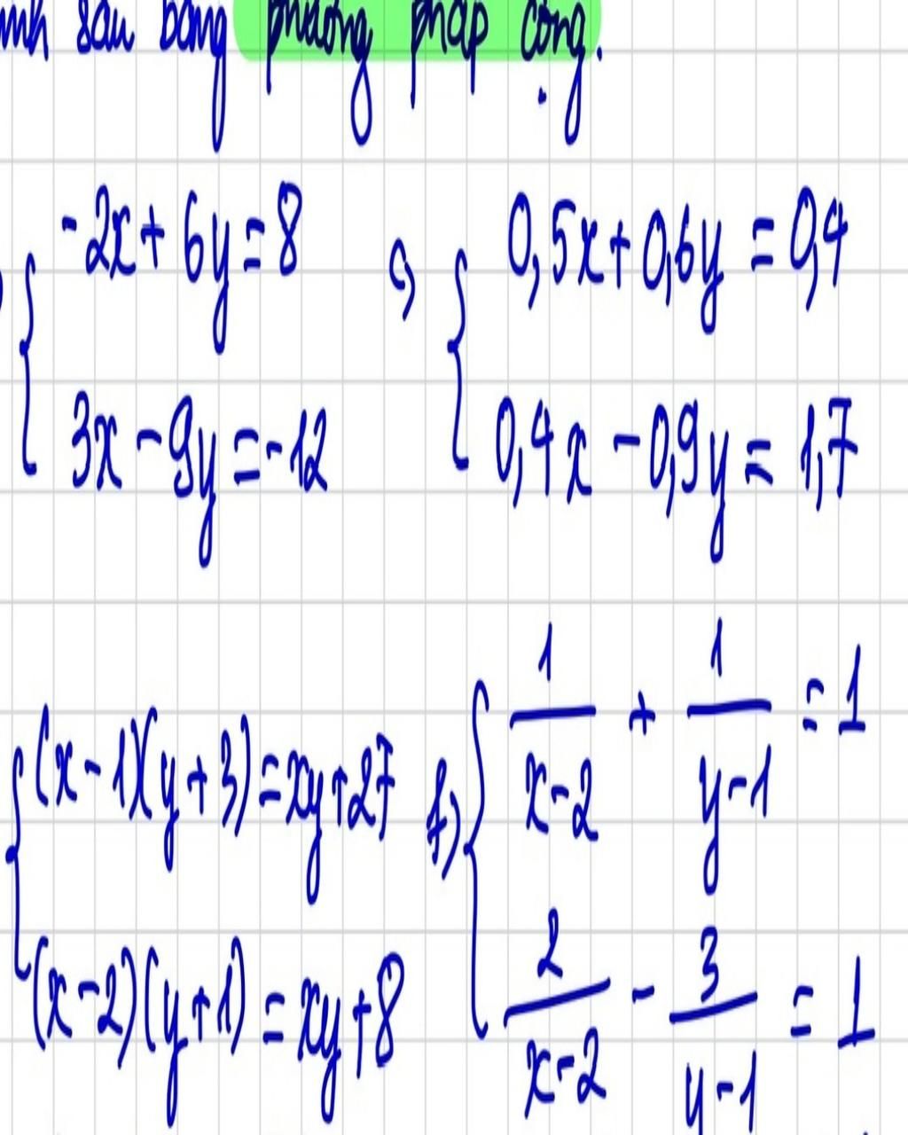 $\begin{cases} \dfrac{1}{x-2} + \dfrac{1}{y-1} =1\\\dfrac{2}{x-2} - \dfrac{3}{y-1} =1 \end{cases}$ đk `x \ne 2 ; y \ne 1`