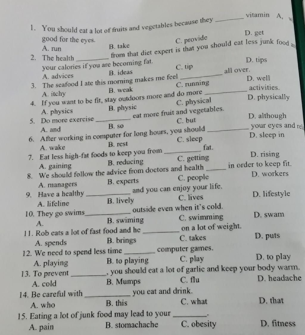`-` prevent cold: ngăn cảm lạnh `->` nên ăn nhiều tỏi và giữ ấm cơ thể