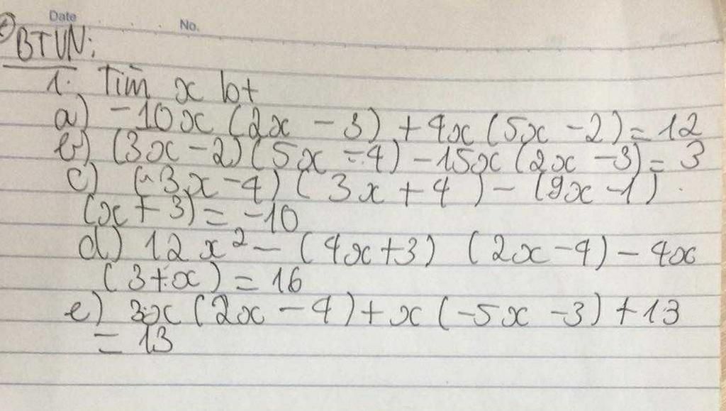 \(a, -10x(2x - 3) + 4x(5x - 2) = 12\)