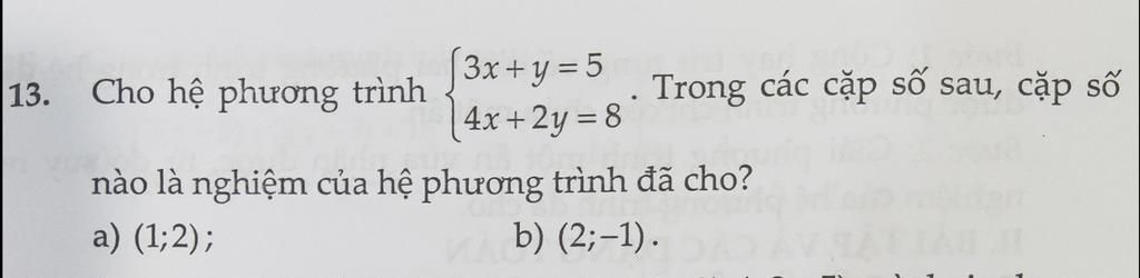 Vậy cặp số `(2;-1)` không là nghiệm của hệ phương trình đã cho.