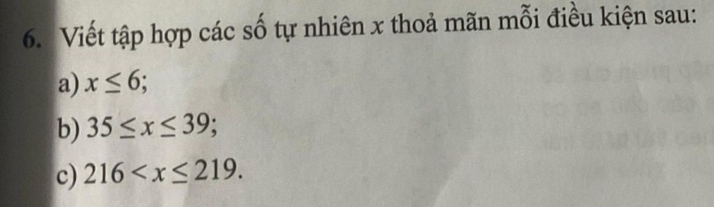 `c)` `216<x=<219` và `x in NN` `=>x in {217;218;219}`