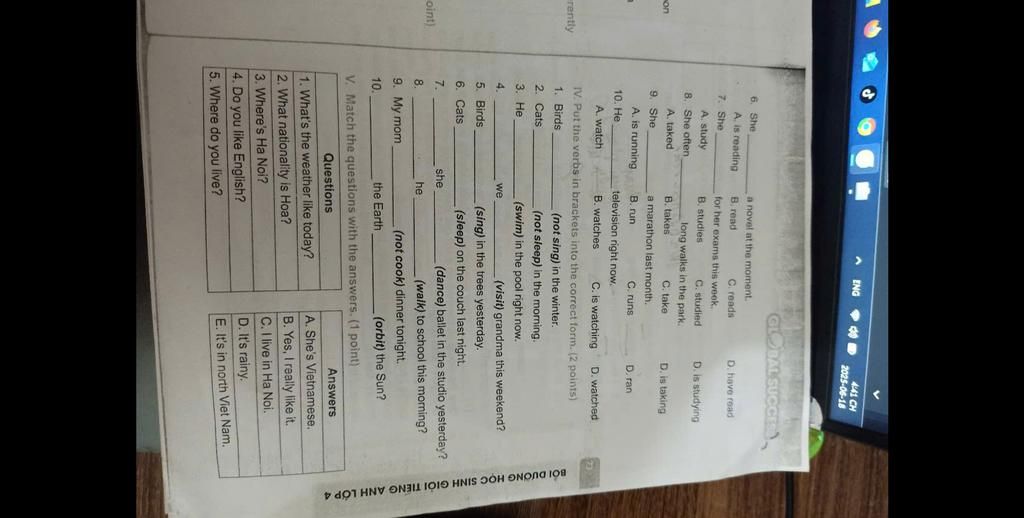 `⇒` Trong câu hỏi về thời tiết ngày hôm nay `→` `Ans` `:` Nó mưa.