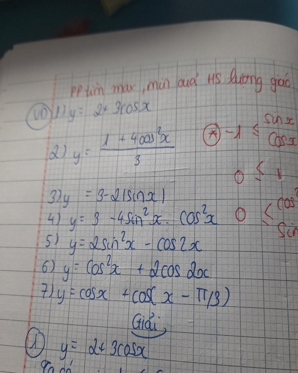 Giúp em bài 5,6,7 ạ. Tìm max, min của hàm số lượng giác ạ