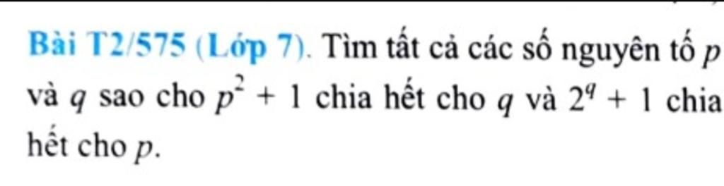 `=> 2^2 + 1 ⋮ p => p = 5=> 5^2 + 1 ⋮ 2 ( t//m) `