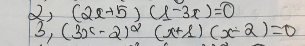 `(3x-2)^2=0` hoặc `x+1=0` hoặc `x-2=0`