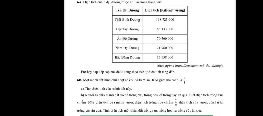 Bắc Băng Dương; Nam Đại Dương; Ấn Độ Dương; Đại Tây Dương; Thái Bình Dương