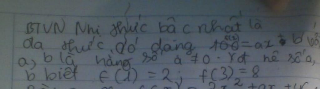 $f(1)=2\to a\cdot 1+b=2\to a+b=2\to b=2-a$