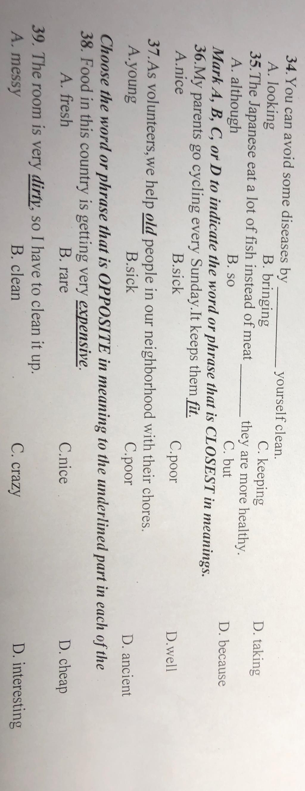 - dirty (a.) : bẩn >< clean (a.) : sạch sẽ
