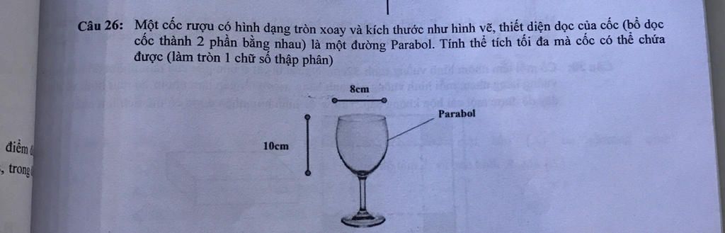 $\Rightarrow$ Thiết diện dọc của cốc là parabol $(P): y = ax^2$ đi qua $(4; 10)$ và $(-4; 10)$