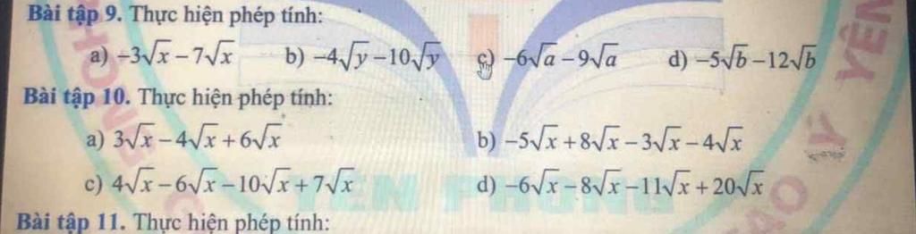`a)-3\sqrt{x}-7\sqrt{x}=-10\sqrt{x} `