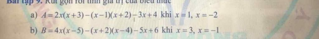 Vậy khi ` x = 1 ` thì ` A = 9 ` ; ` x = -2 ` thì ` A = 6 `