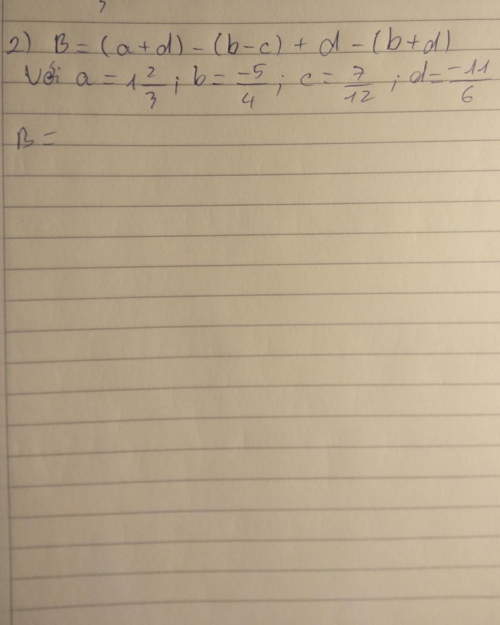 Vậy khi `a=1 2/3,b=-5/4,c=7/12,d=-11/6 ` thì `B=35/12 `