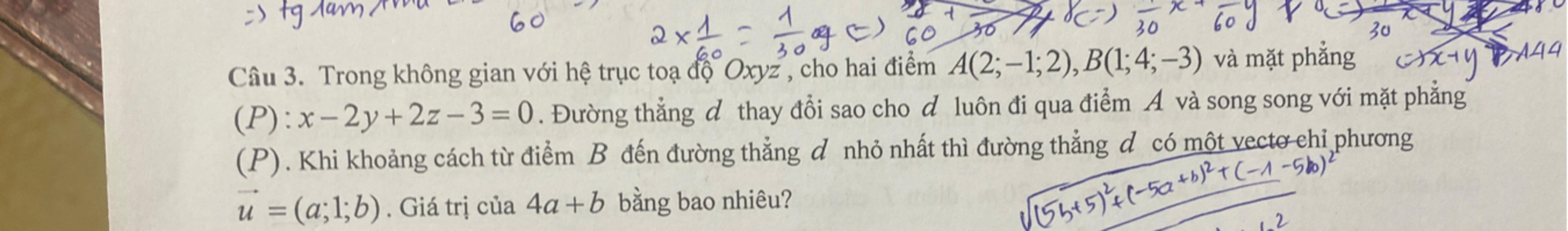 $\to d(B, d)=\dfrac{\sqrt{(5b+5)^2+(-5a+b)^2+(-1-5a)^2}}{\sqrt{a^2+1^2+b^2}}$