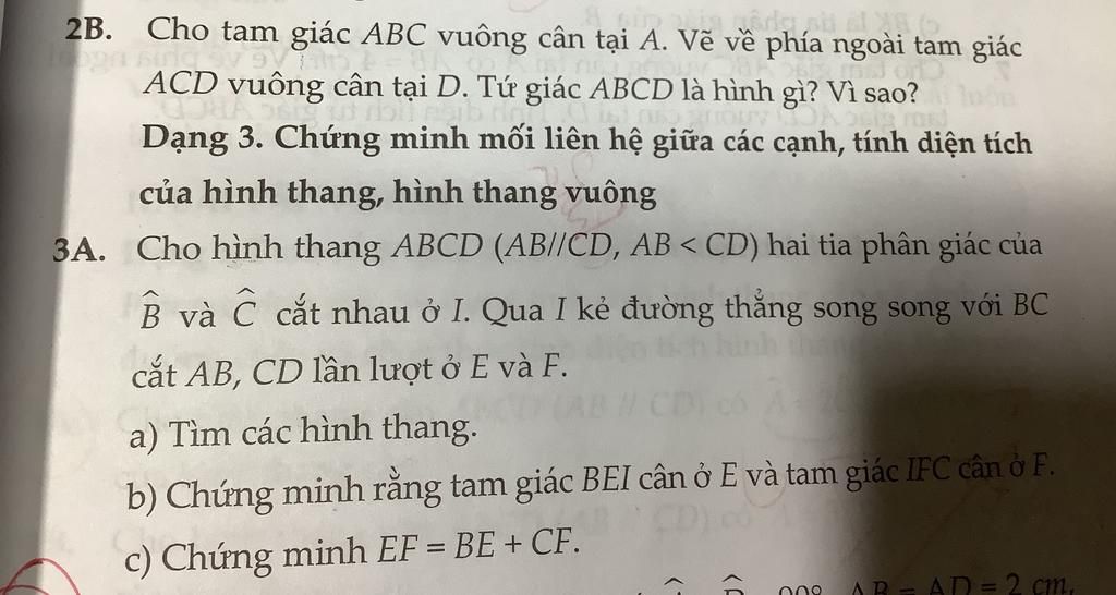 ⇒ ΔEBI cân tại E vì có 2 góc bằng nhau