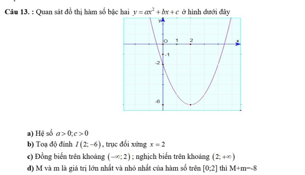 Điểm thấp nhất trên đồ thị là `I(2;-6) ->` Đỉnh