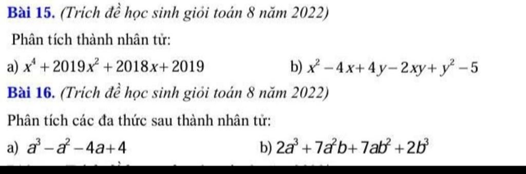 $\textbf{a$\bigg)$} x^4 + 2019x^2 + 2018x + 2019$