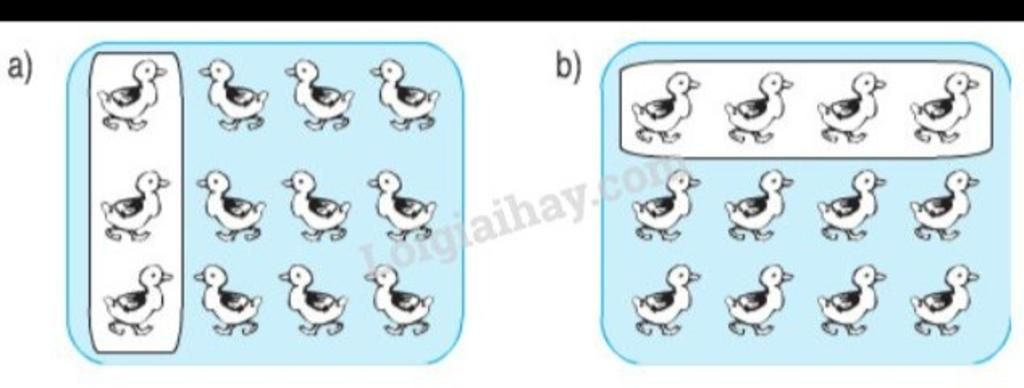 Ở hình `a)` và `b)` có `12` con vịt