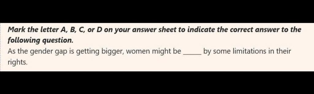 `-` Trans : Khi khoảng cách giới tính ngày càng lớn, phụ nữ có thể bị ảnh hưởng bởi một số giới hạn trong quyền của họ.