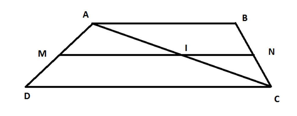 Cho hình thang ABCD có AB//CD . Gọi M là trung điểm của AD , kẻ MN//AB (N thuộc BC) . Chứng minh rằng N là trung điểm của AB và MN= 1/2 ( AB+CD)