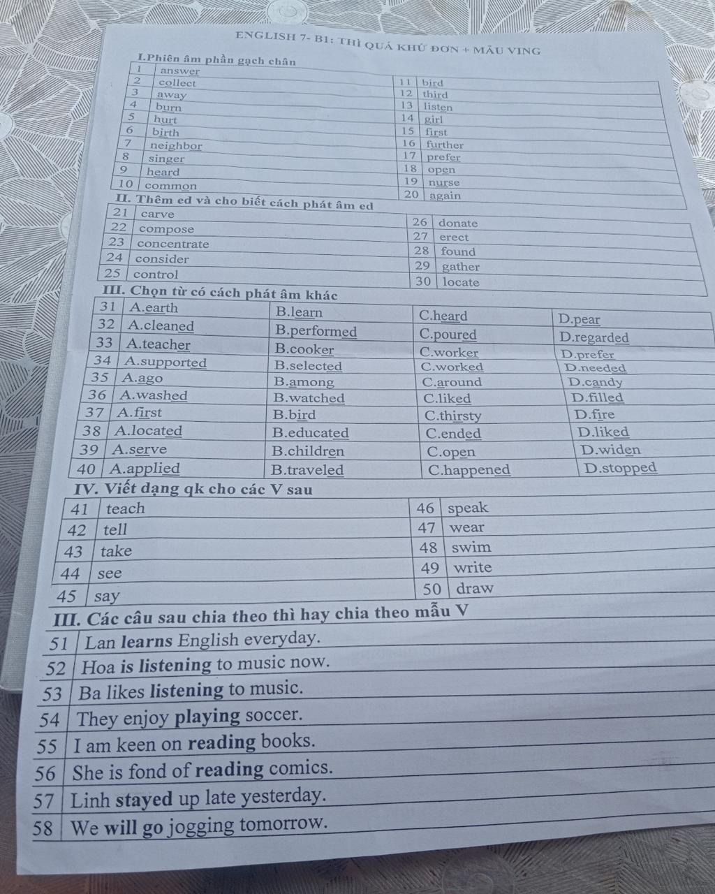 57. Chia theo thì (Quá khứ đơn) - S+ V2/ed