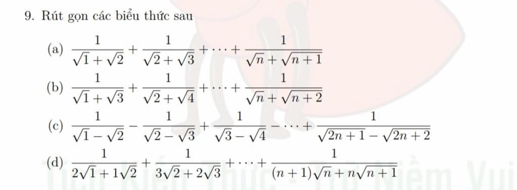 Ta có: `1/(sqrt(k)-sqrt(k+1)) = (sqrt(k)+sqrt(k+1))/(k-(k+1)) = -(sqrt(k)+sqrt(k+1))`