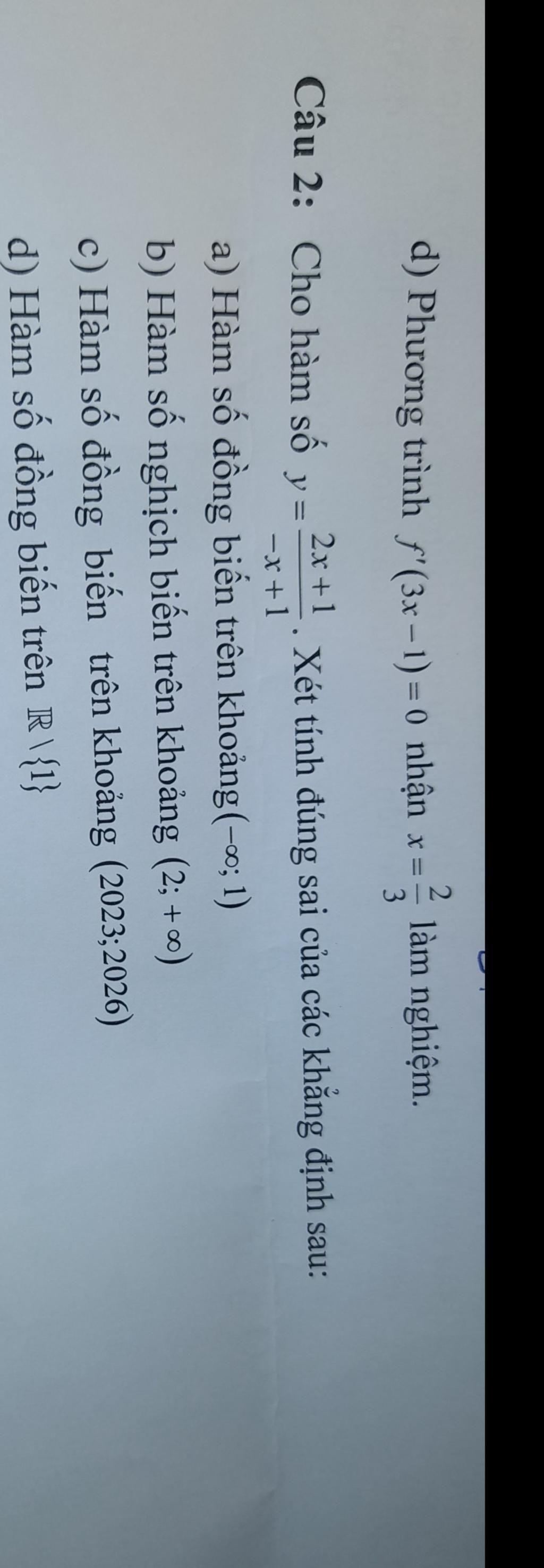 Hàm đồng biến trên `(1;+infty) ->` Trên `(2023;2026)` hàm đồng biến