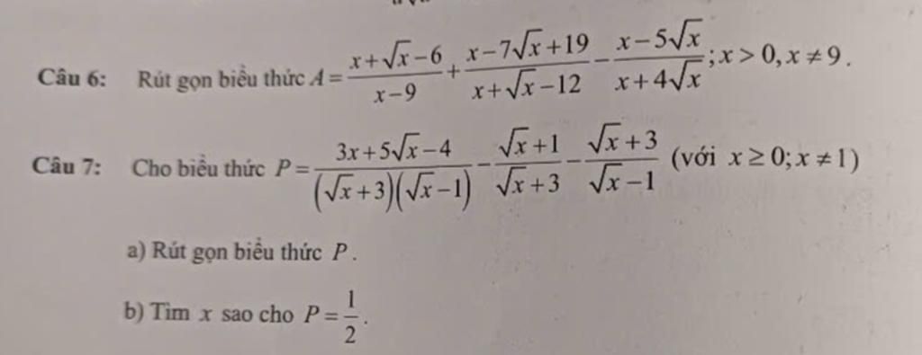 `A=((\sqrt{x}-2)(\sqrt{x}+4)+x-7\sqrt{x}+19-(\sqrt{x}-5)(\sqrt{x}-3))/((\sqrt{x}-3)(\sqrt{x}+4))`