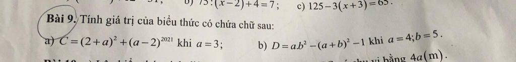Thay `a=4 ;b=4` vào biểu thức `D` ta được