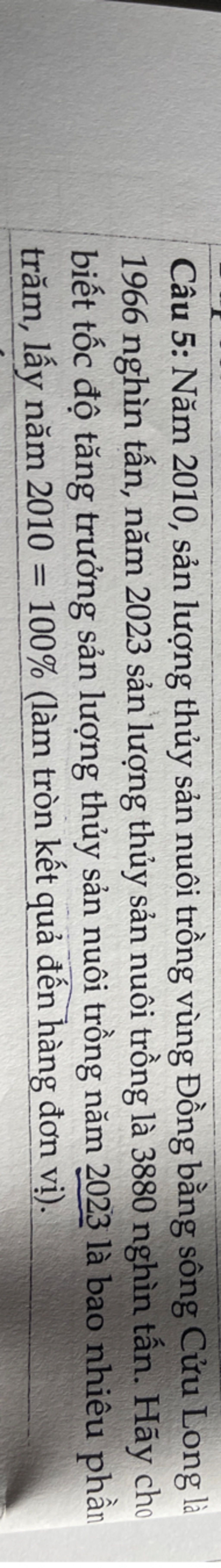 Tốc độ tăng trưởng sản lượng thủy sản nuôi trồng năm `2023` so với `2010` là `:`