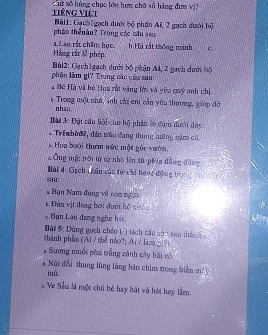 Bài `4.` Các từ chỉ hoạt động trong các câu sau gồm :