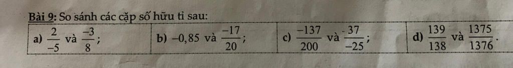 Vì `0,4 > 0,375` nên `-0,4 < -0,375`