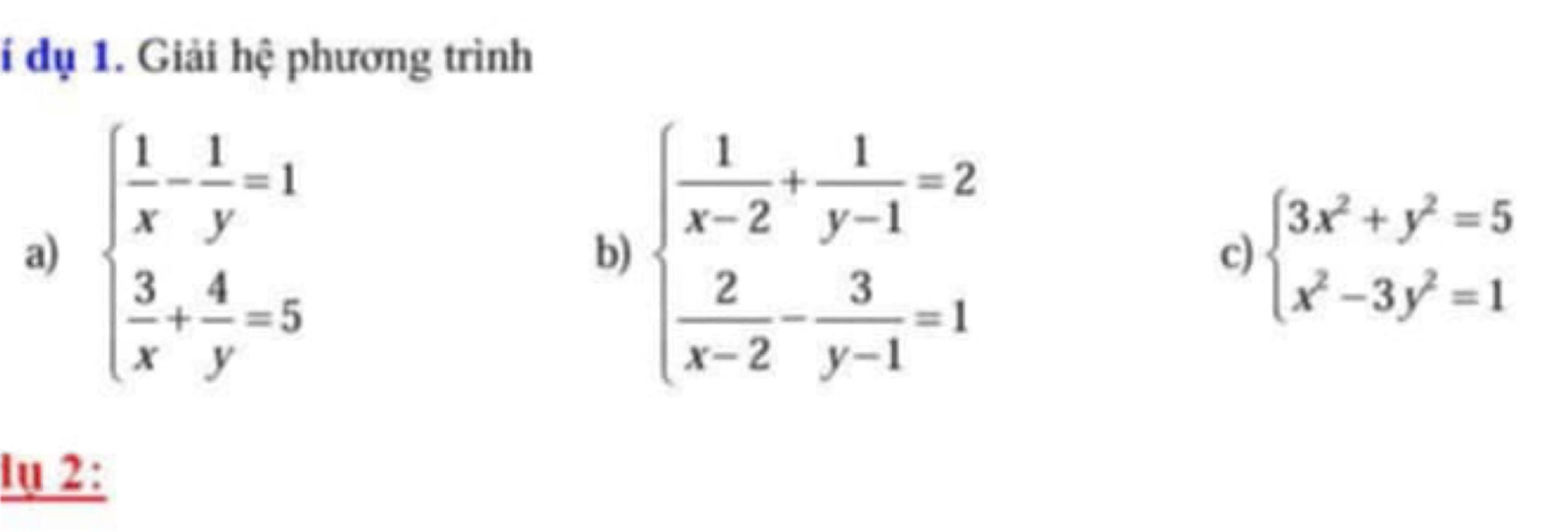 Giải các hệ phương trình trên
