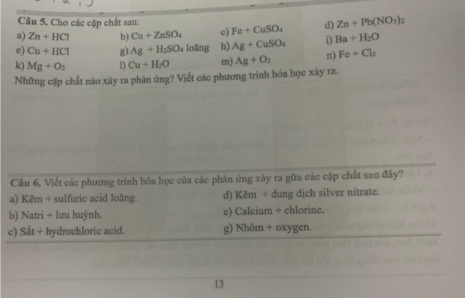 $\rm h. Ag+CuSO_4 \to $ không pư