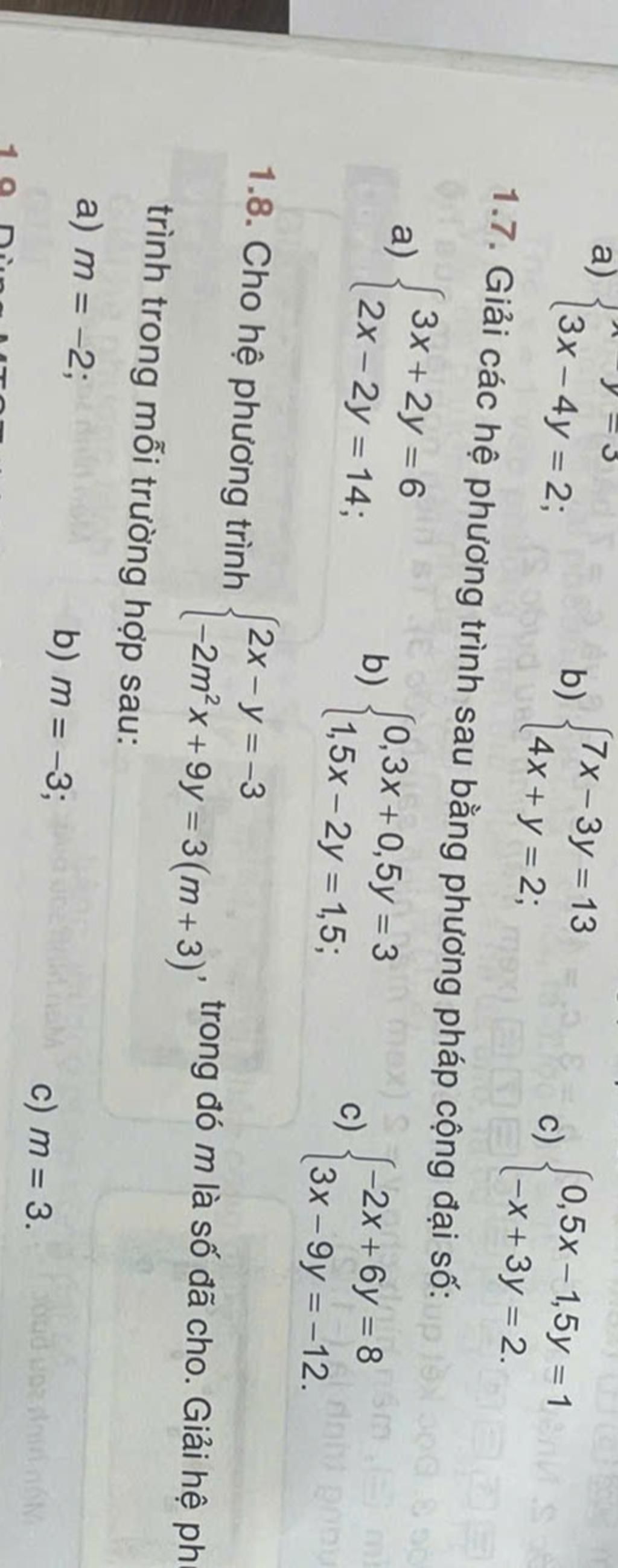 `{(0.3x+0.5y=3 (1)),(1.5x-2y=1.5):}`